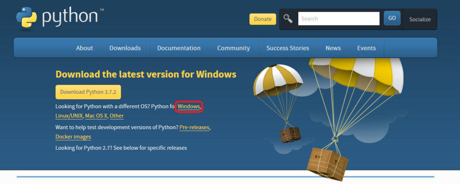 이미지에 나와있는 'Download Python 3.7.2'를 통해 설치해도 사용에는 큰 지장이 없습니다.
