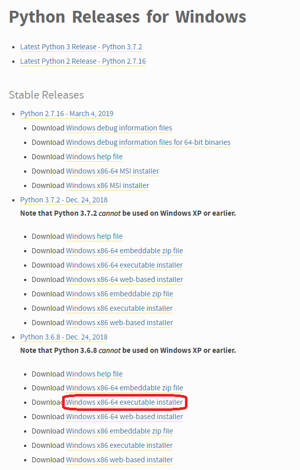 다음 페이지에서 Python 3.6.8 용 설치파일을 다운로드합니다.